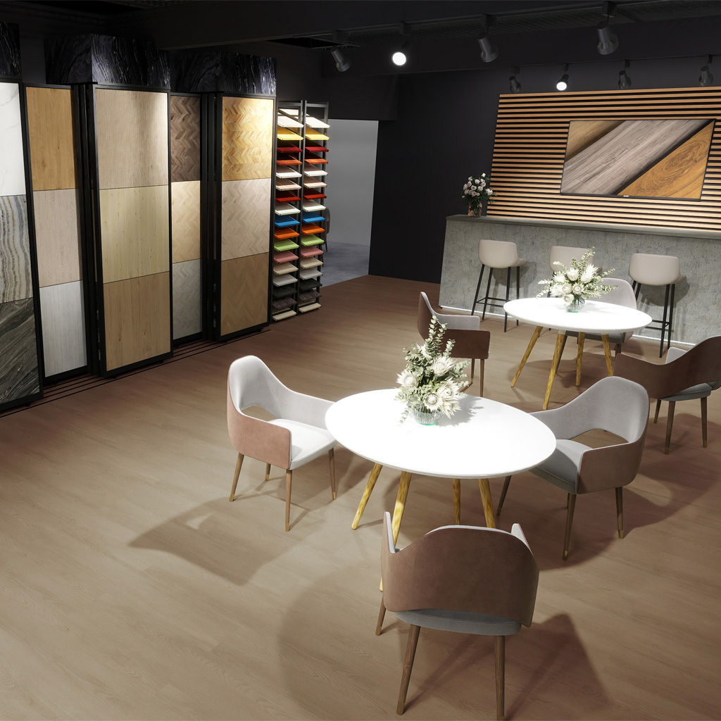 Voor standbouwers die streven naar een verfijnde uitstraling, biedt de 2100 Serie de perfecte balans tussen stijl en ingetogenheid. De subtiel grijze gloed in de houttinten, gecombineerd met het rustigere patroon, zorgt voor een tijdloze esthetiek. Met 4 verschillende tinten om uit te kiezen, kunt u een harmonieuze omgeving creëren die de focus legt op uw standontwerp.