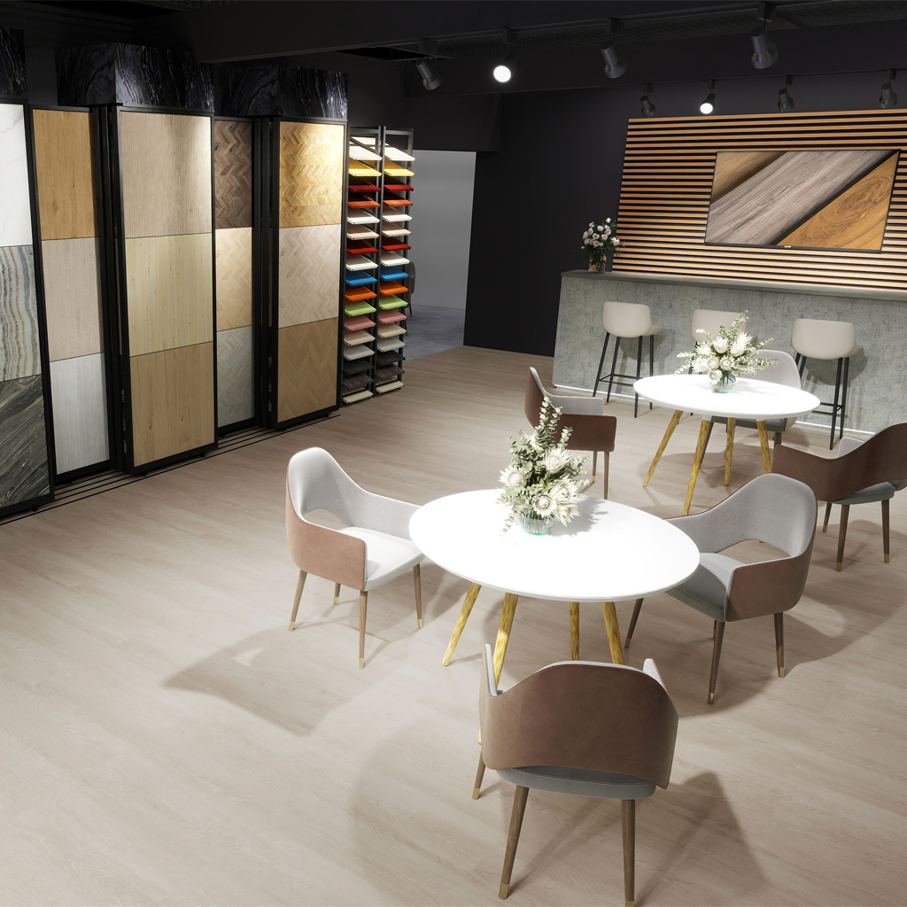 Voor standbouwers die streven naar een verfijnde uitstraling, biedt de 2100 Serie de perfecte balans tussen stijl en ingetogenheid. De subtiel grijze gloed in de houttinten, gecombineerd met het rustigere patroon, zorgt voor een tijdloze esthetiek. Met 4 verschillende tinten om uit te kiezen, kunt u een harmonieuze omgeving creëren die de focus legt op uw standontwerp.